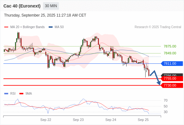 交易策略: 在 7811.00 之下,看跌,目标价位为 7755.00 ,然后为 7730.00 。