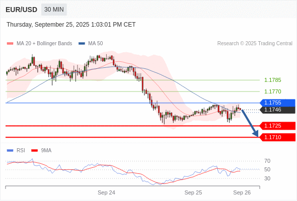 交易策略: 在 1.1755 之下,看跌,目标价位为 1.1725 ,然后为 1.1710 。