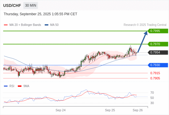在 0.7930 之上,看涨,目标价位为 0.7970 ,然后为 0.7995 。