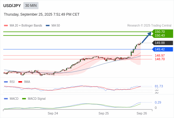 交易策略: 看涨,当 149.42 为支撑位。