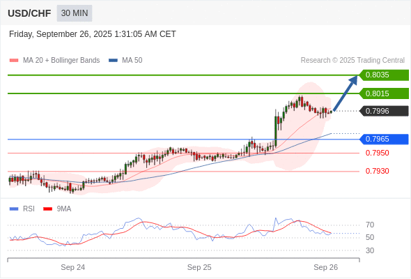 在 0.7965 之上,看涨,目标价位为 0.8015 ,然后为 0.8035 。