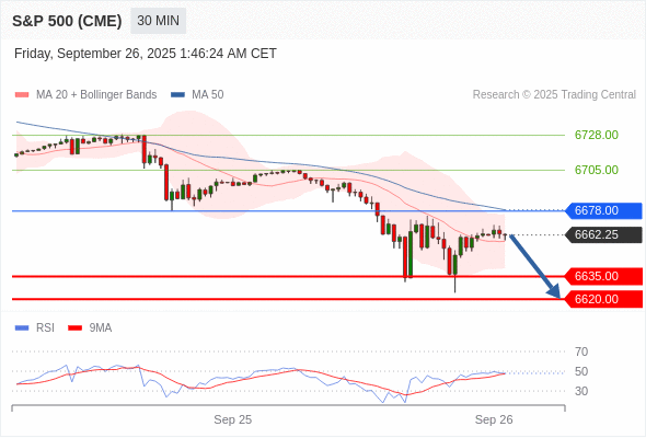 在 6678.00 之下,看跌,目标价位为 6635.00 ,然后为 6620.00 。