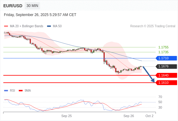 在 1.1710 之下,看跌,目标价位为 1.1640 ,然后为 1.1610 。