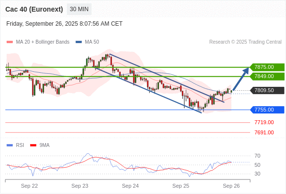 在 7755.00 之上,看涨,目标价位为 7849.00 ,然后为 7875.00 。