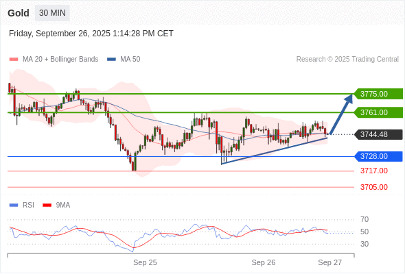 在 3728.00 之上,看涨,目标价位为 3761.00 ,然后为 3775.00 。
