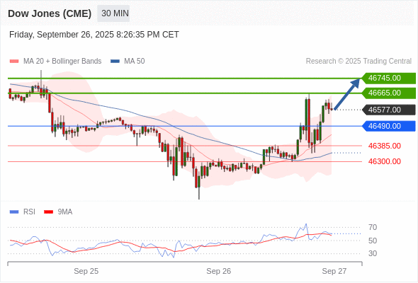 在 46490.00 之上,看涨,目标价位为 46665.00 ,然后为 46745.00 。