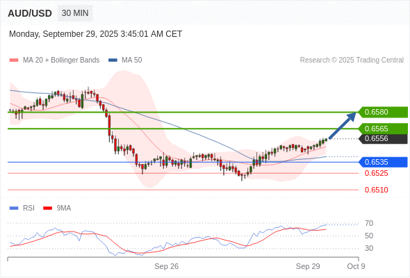在 0.6535 之上,看涨,目标价位为 0.6565 ,然后为 0.6580 。