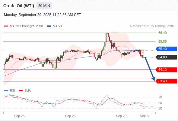 在 65.40 之下,看跌,目标价位为 64.10 ,然后为 63.40 。