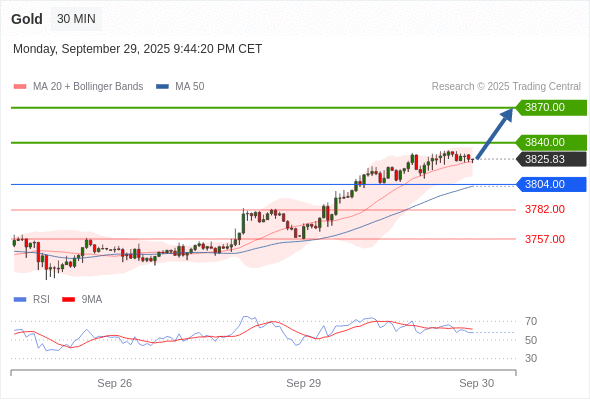 在 3804.00 之上,看涨,目标价位为 3840.00 ,然后为 3870.00 。