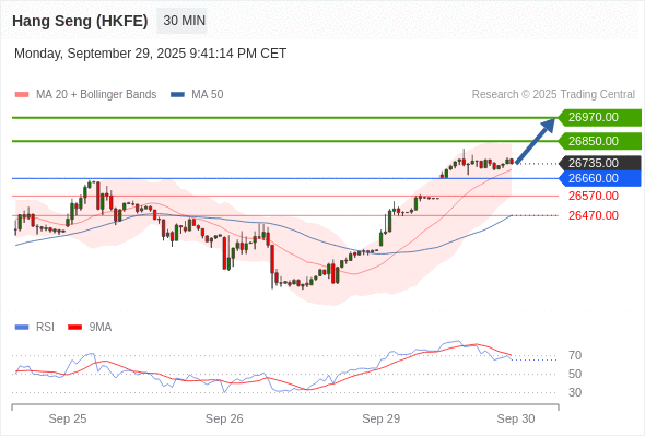 在 26660.00 之上,看涨,目标价位为 26850.00 ,然后为 26970.00 。