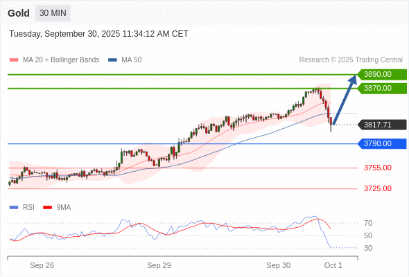 在 3790.00 之上,看涨,目标价位为 3870.00 ,然后为 3890.00 。