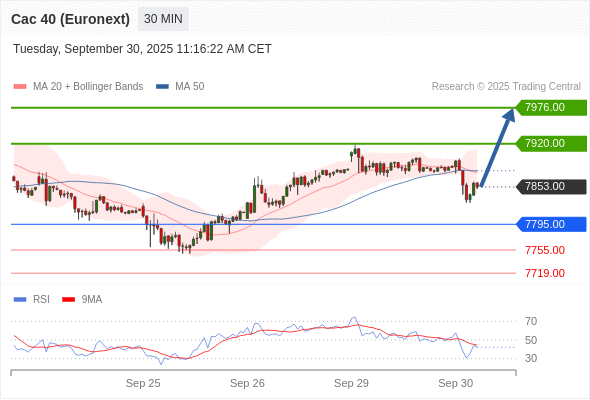 法国CAC指数期货 (Euronext) (V5) 当日内: 超短线(当日内)支撑位在7795.00附近。