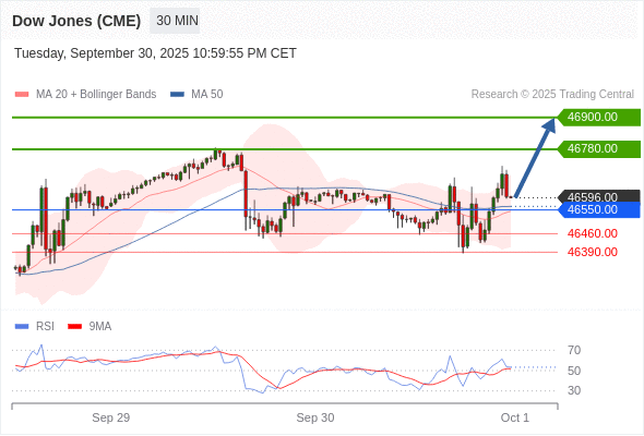 在 46550.00 之上,看涨,目标价位为 46780.00 ,然后为 46900.00 。