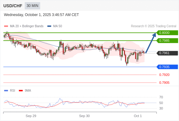 在 0.7935 之上,看涨,目标价位为 0.7985 ,然后为 0.8000 。