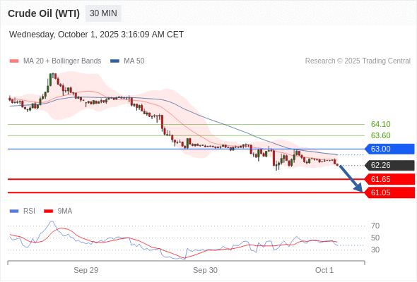 在 63.00 之下,看跌,目标价位为 61.65 ,然后为 61.05 。