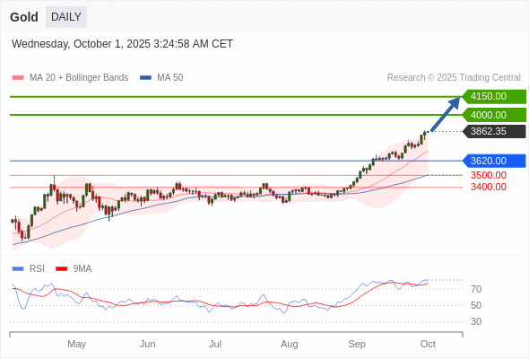 在 3620.00 之上,看涨,目标价位为 4000.00 ,然后为 4150.00 。