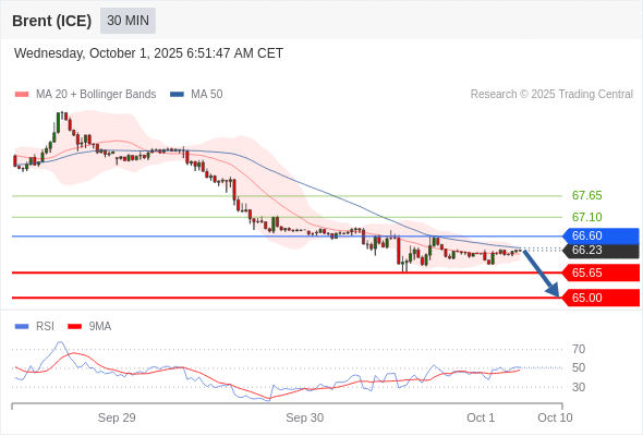 布伦特原油 (ICE) (Z5) 当日内: 短期关键阻力位在66.60。