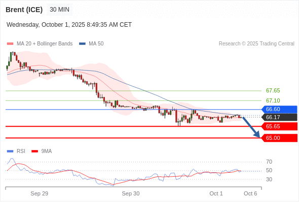 在 66.60 之下,看跌,目标价位为 65.65 ,然后为 65.00 。
