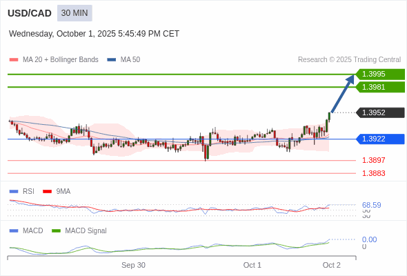 首页 > > 美元/加元 当日内 : 看涨,当 1.3922 为支撑位。