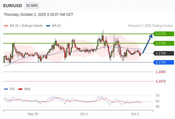 在 1.1710 之上,看涨,目标价位为 1.1750 ,然后为 1.1770 。