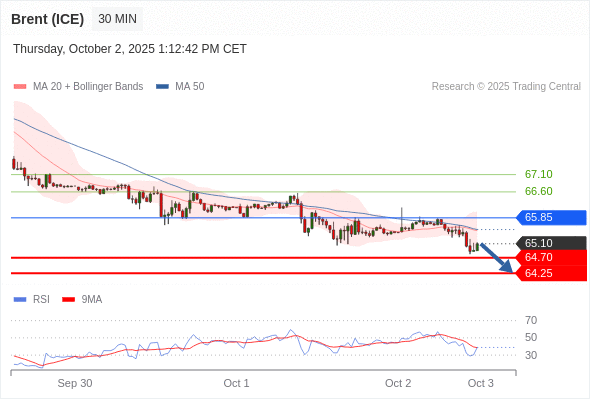 在 65.85 之下,看跌,目标价位为 64.70 ,然后为 64.25 。