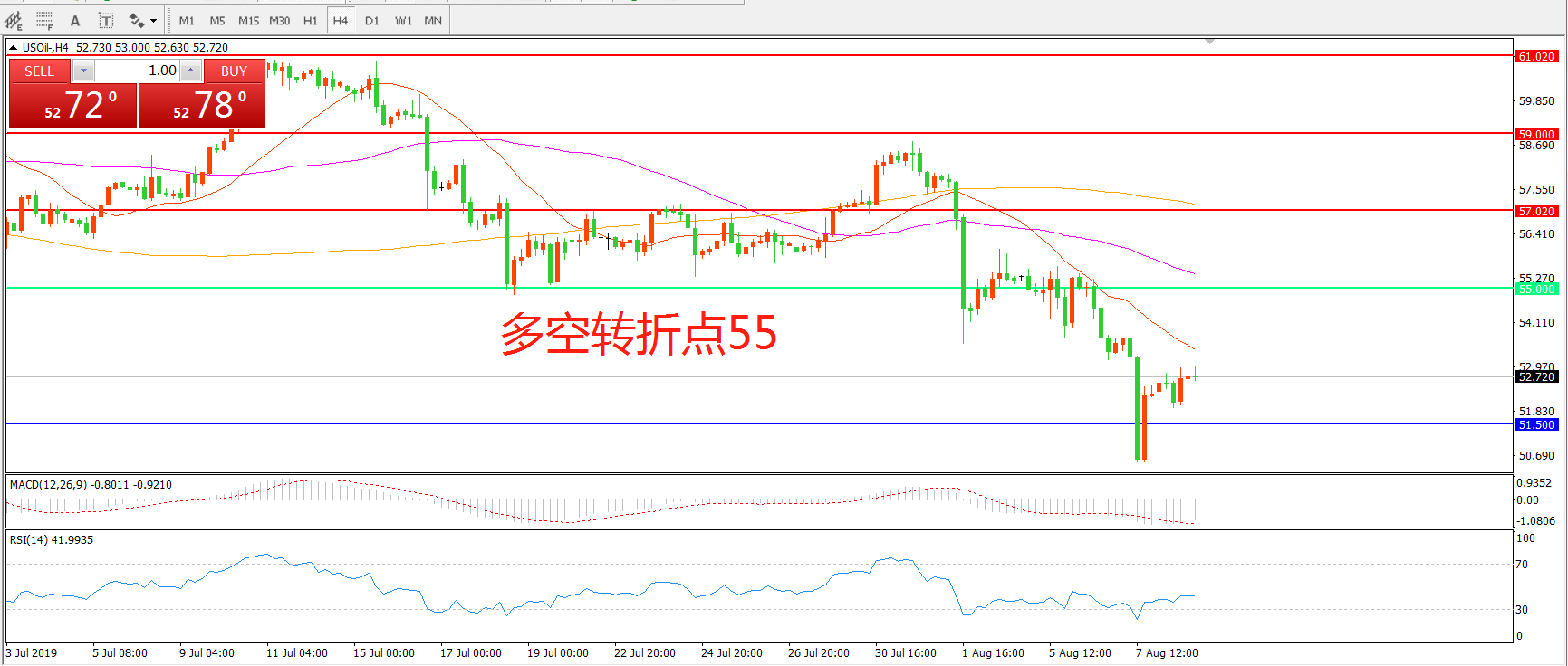 交易策略:在55.00之下看跌,目标51.50 49.50