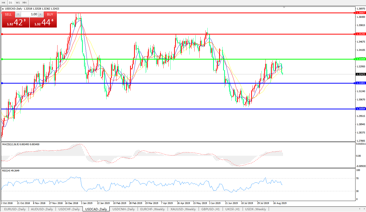 美元兑加元在周一日内围绕1.33关口窄幅盘整,波动有限。虽然,上周五以来全球贸易领域风波再起,对商品系货币构成打压,但相比起澳元和纽元,在亚洲市场风险敞口有限的加元受挫程度相对轻微; 与此同时,周一国际油价开盘跳空暴跌但之后又全面企稳的走势,也令加元在国际汇市保持了相对坚挺的走势,同时,虽然美国耐用品订单数据进一步推动美元走强,但是该数据对于与美国经济往来高度密切的加拿大同样是利多,因此,美元兑加元上行幅度仍然受限;市场正在密切关注本周稍后将发布的加拿大二季度GDP数据,加拿大央行之后会否跟随美联储进入宽松周期,很大程度上在此一举,因此该数据也会对加元汇价前景起到决定性的影响