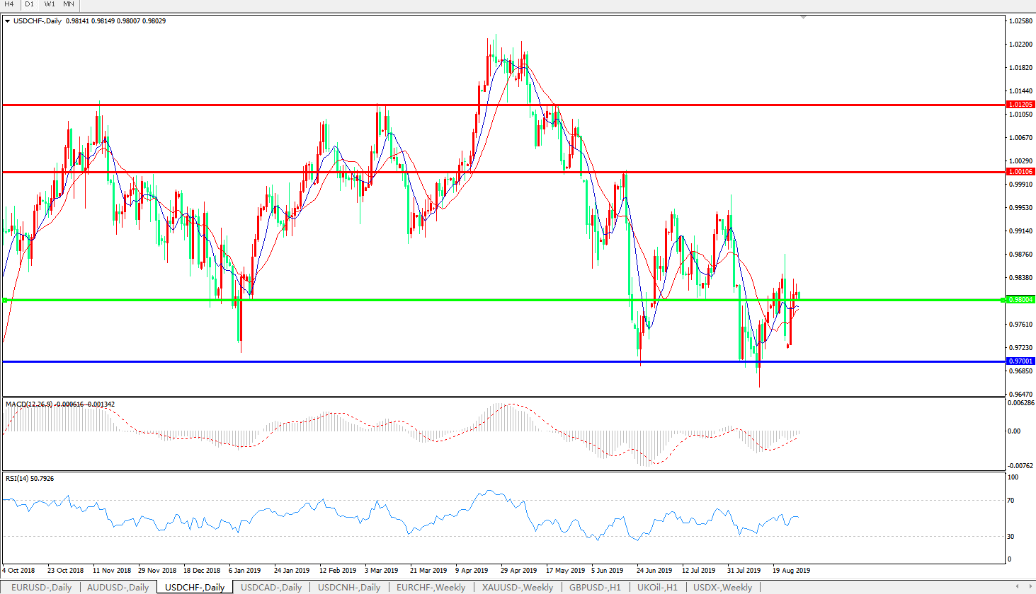 美元兑瑞郎USDCHF 日线图: