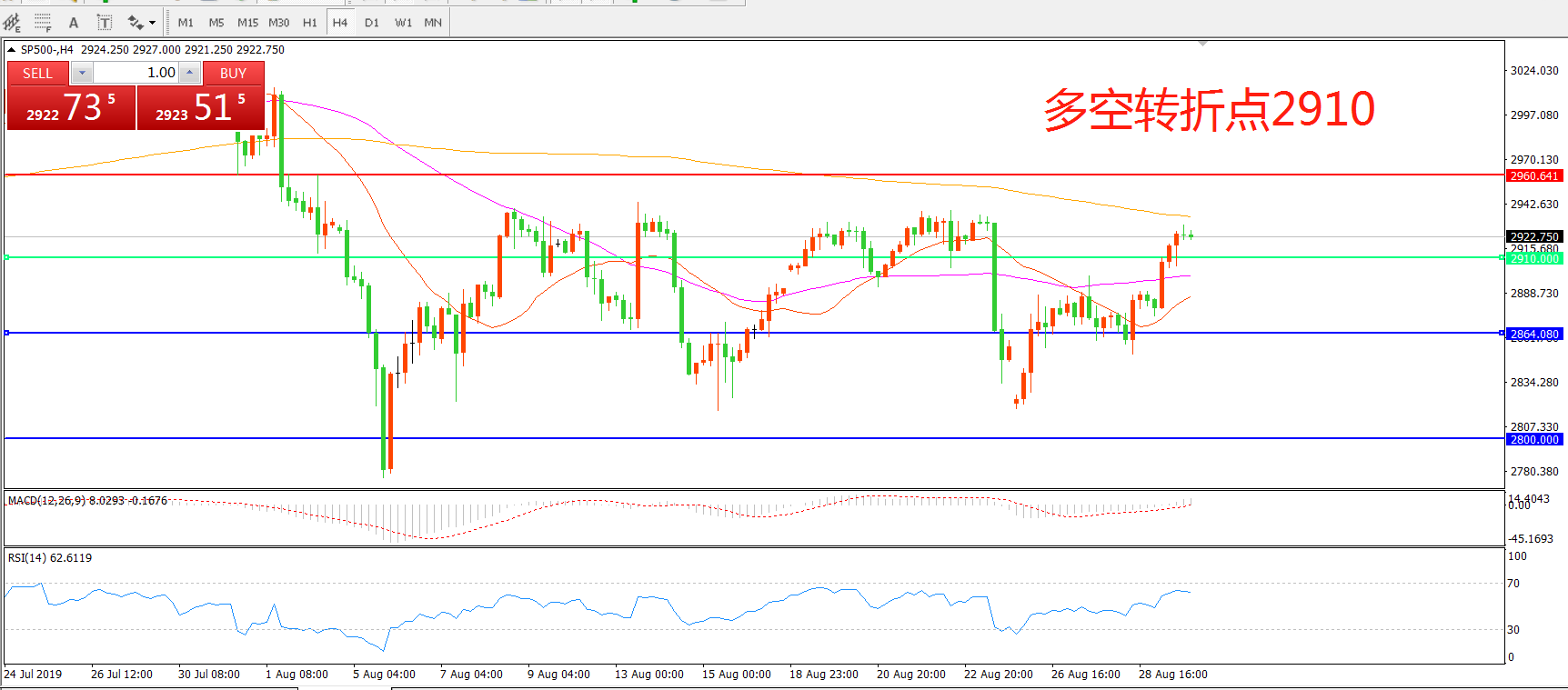 多空转折点:2910.00