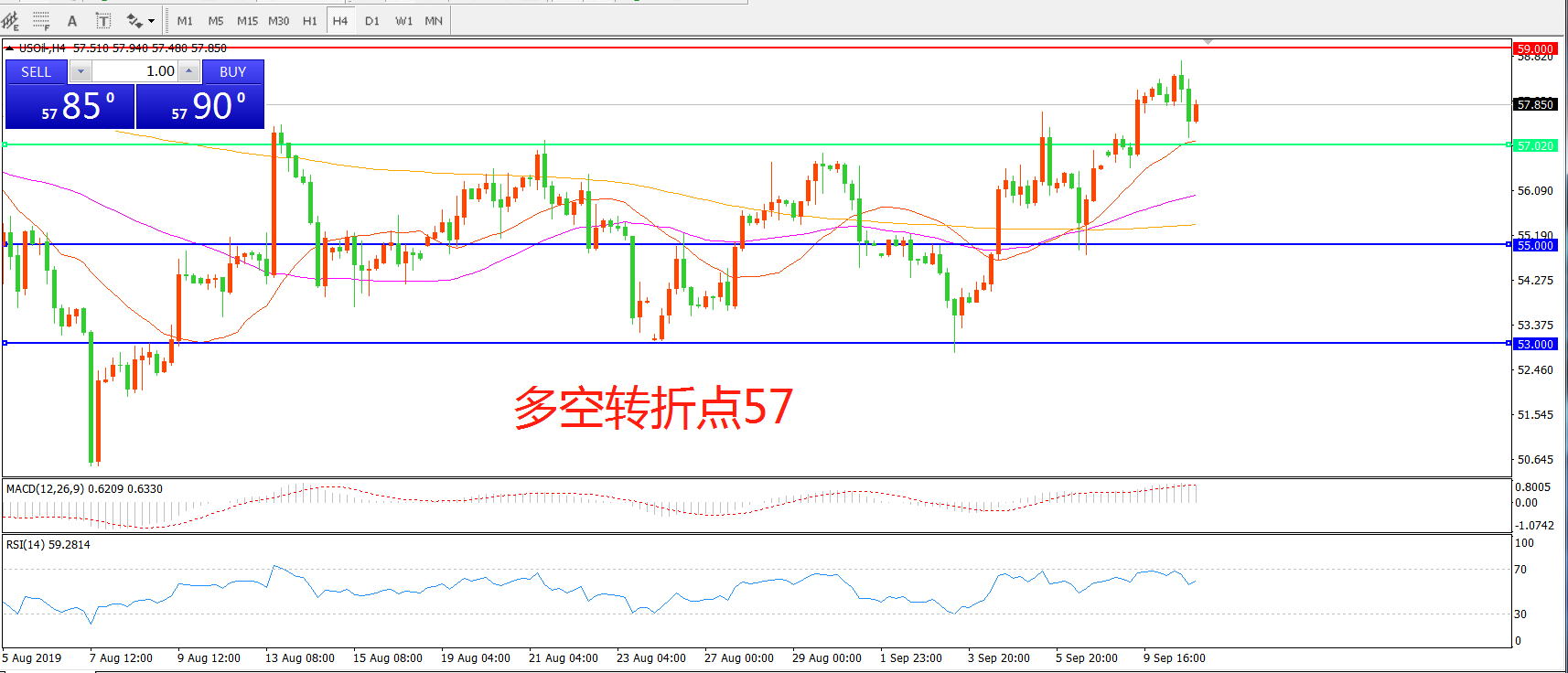 交易策略:在57.00 之上看涨,目标59.00   61.50