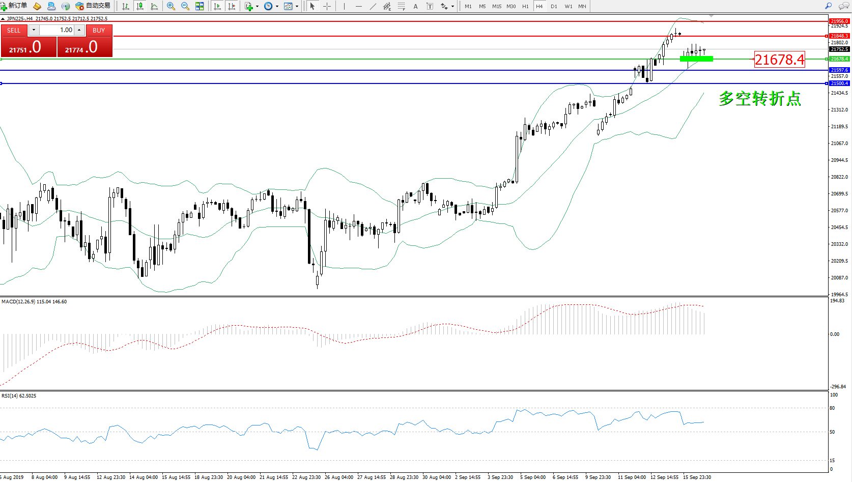 交易策略:21678上方看涨,目标21848、21956