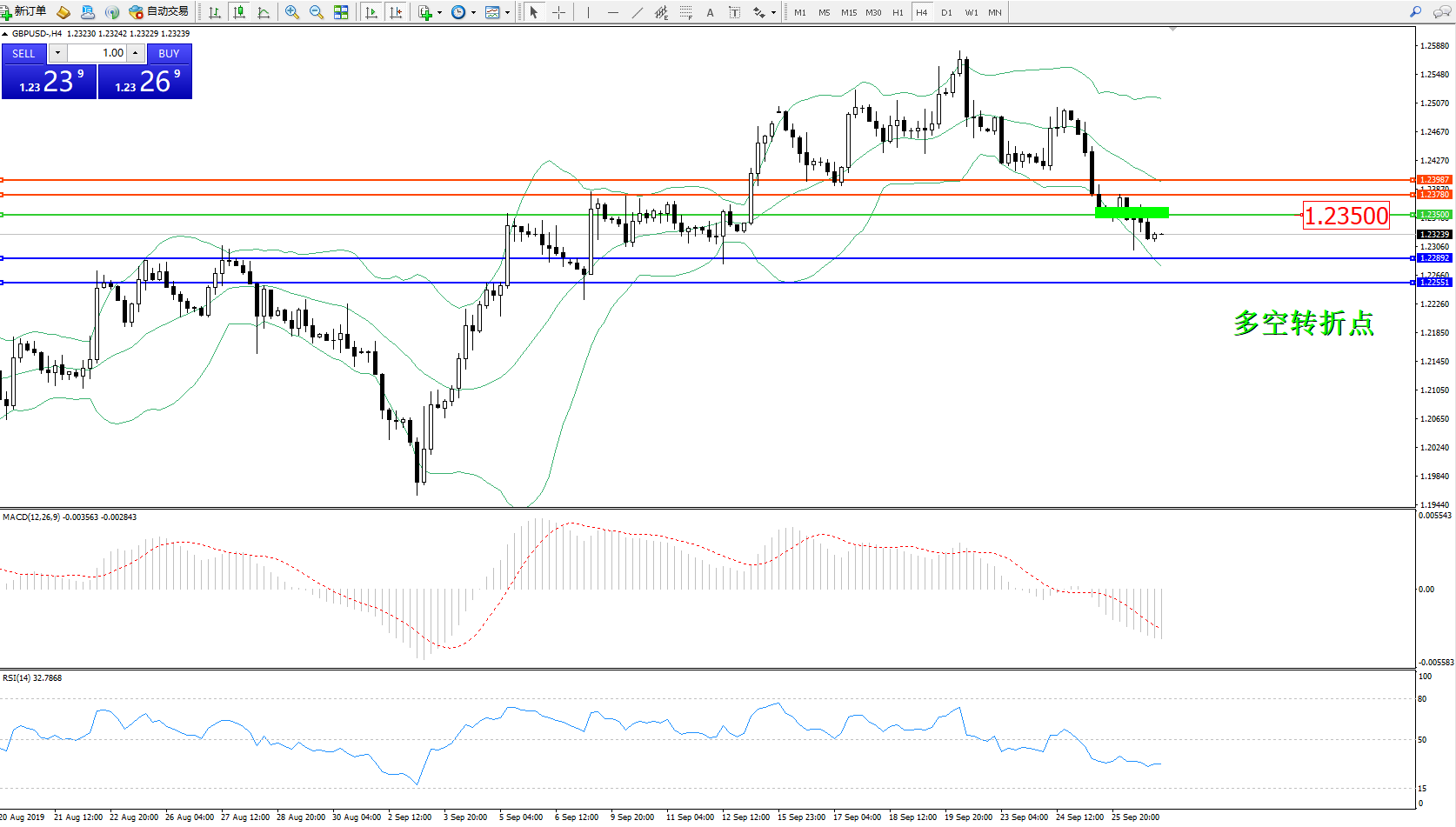交易策略:1.23500下方看跌,目标1.22892、1.22551