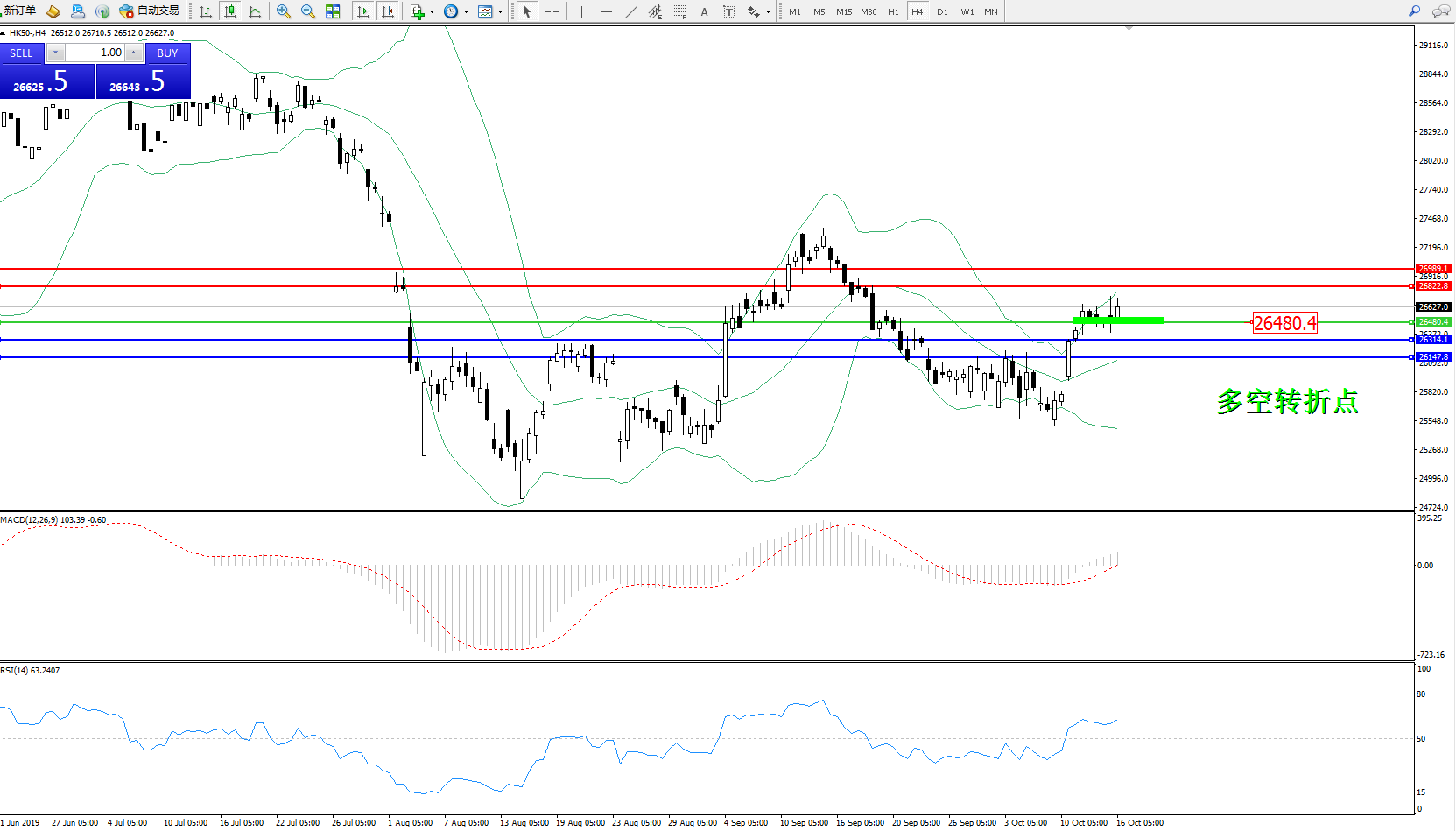 香港恒生指数1016日(周三)收盘上涨160.35点,涨幅0.61%,报26664.28点;截至今日收盘,恒指大市成交额为823.36亿港元(上一交易日成交额为756.82亿港元)。恒生地产指数涨幅扩大至2.78%,香港蓝筹地产股的板块涨幅扩大至4%以上。美国三大股指全数上扬。美股收高,投资者对一大批乐观的企业盈利报告表示乐观,同时考虑了上周五宣布的部分中美贸易协议的影响以及英国退欧谈判可能突破的可能性,支撑了股市的攀高。