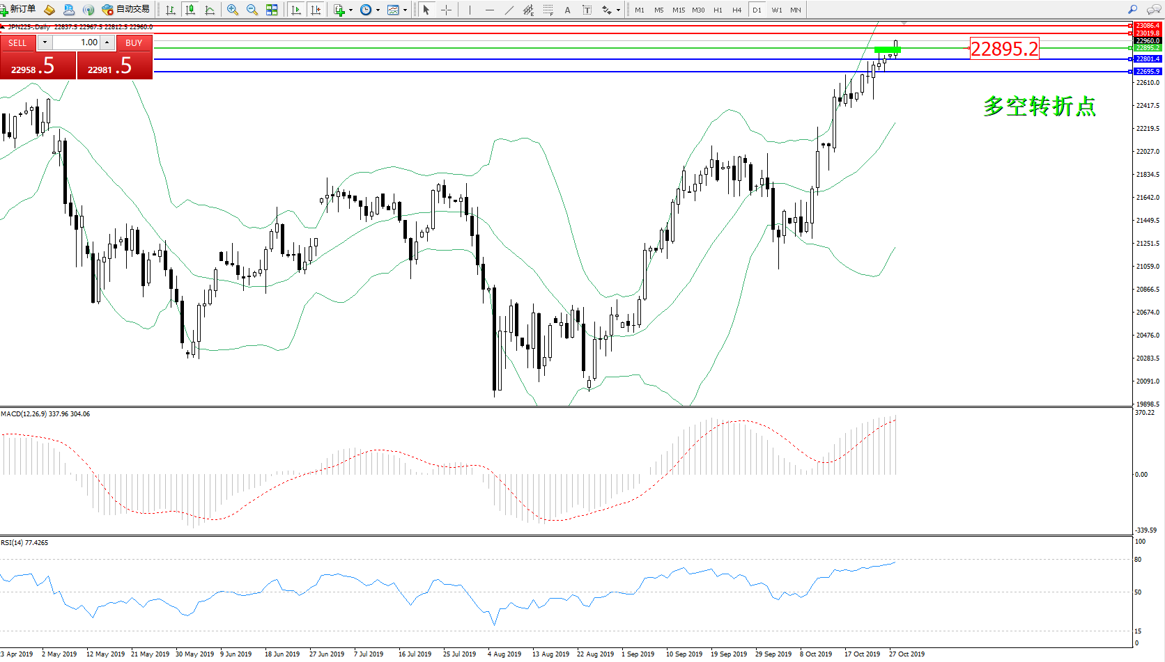 日经225指数10月28日(周一)收盘上涨55.69点,涨幅0.24%,报22855.50点。日本央行维持各期限购债规模不变。日本财政大臣麻生太郎表示,市场可能反应过度,日本企业的基本面良好。“市场可能体现了一部分国际贸易不确定性,但我还没有到特别担心的程度。”日本已不再处于通缩衰退,“六年前资产价格下跌让我们看到了通缩,而现在基本工资上升、企业扩大资本开支,从现在开始我们需要解决的问题是企业囤积现金的行为”。
