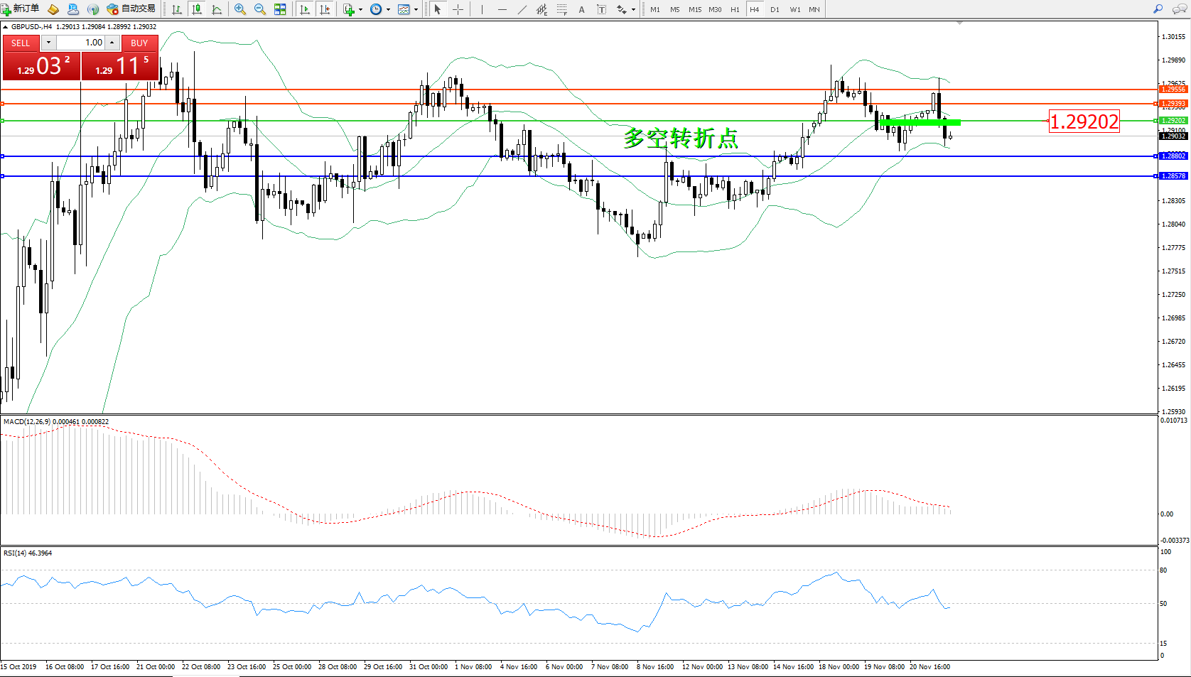 交易策略:1.29202下方看跌,目标1.28802、1.28578