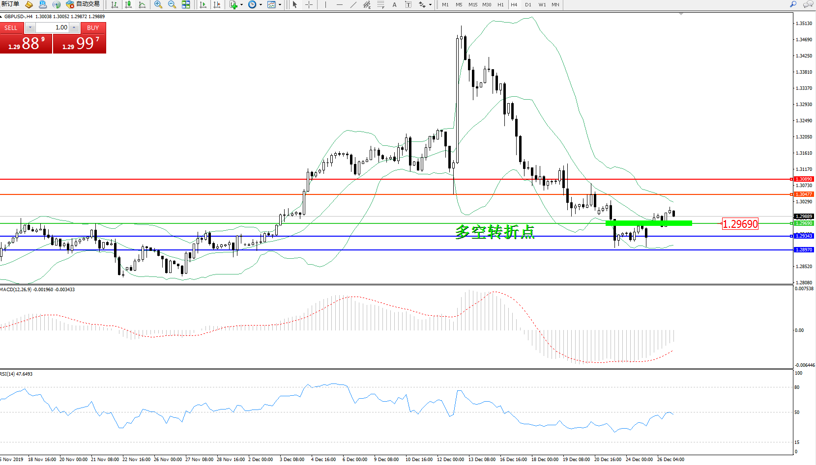 交易策略:1.29690上方看涨,目标1.30477、1.30890