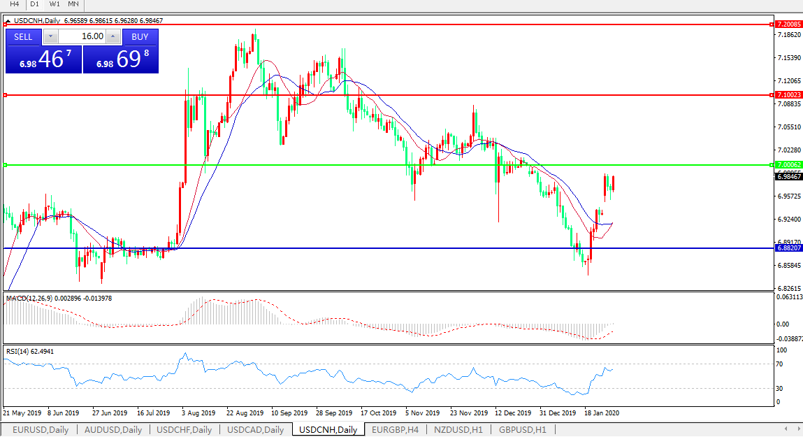 交易策略: 在7.0000之下,看跌,目标价位为6.8820,然后为6.7600。