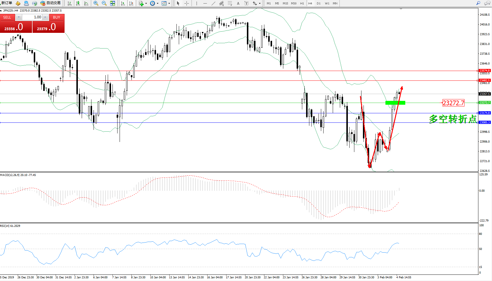 日经225指数2月4日(周二)收盘上涨94.06点,涨幅0.41%,报23066.00点。因利空消息进一步得到消化后,全球恐慌情绪正开始消退,投资者且更押注美国总统特朗普在周三亚洲时段的国情咨文讲话中能释放出更多积极措辞;日本官员近期所释放的宽松基调,日本央行行长黑田东彦日内再度强调,如有必要,将毫不犹豫恣地强化宽松行动,日本央行正收集有关疫情影响的各种信息。全球风险情绪目前更加谨慎。如有需要将毫不犹豫实施更加宽松的政策。将最大限度地关注经济、物价和金融市场。目前实施更宽松的政策还为时尚早。