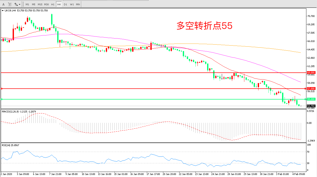 交易策略:在55.00 之下看跌,目标52.00    49.00
