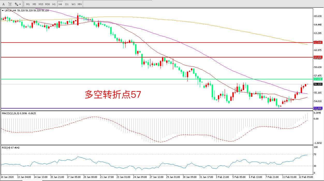 交易策略:在57.00之上看涨,目标60.00    62.00