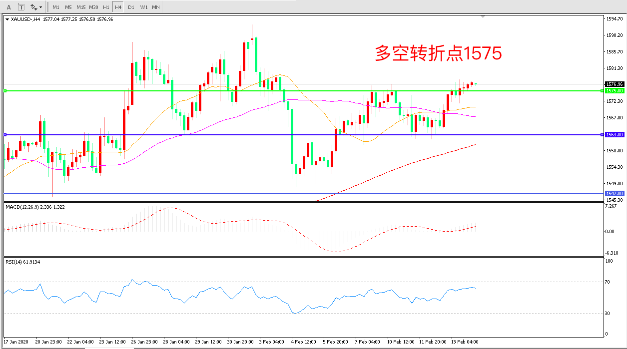 备选策略:在1575.00之下看跌,目标1563.00   1547.00