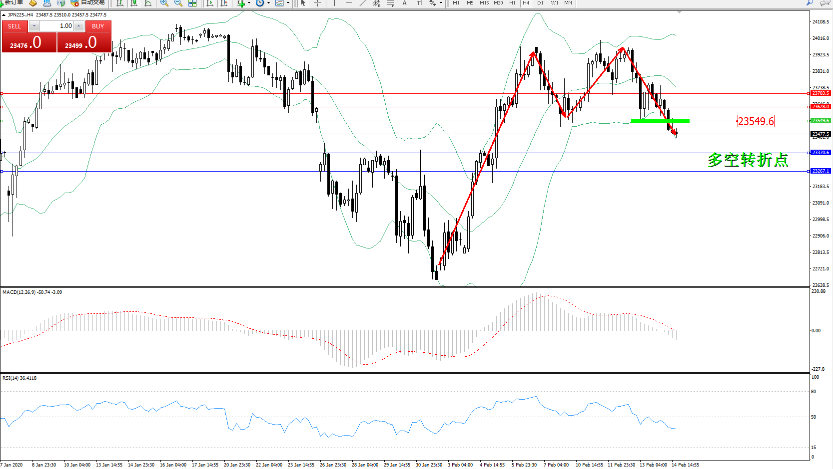 日经225指数2月14日(周五)收盘下跌160.73点,跌幅0.67%,报23667.00点。美元指数再创四个月新高,得益于强劲的美国经济表现,投资者需继续聚焦亚洲突发卫生事件带来的影响,日本央行希望维持强力的货币宽松政策来支持经济;日本高级官员:劳动力短缺不是阻碍日本经济的一大因素;公营、私营领域必须努力提高生产力,这样经济才能获得可持续的强力增长;在资本和政府支出复苏的影响下,日本经济可能会维持适度扩张。