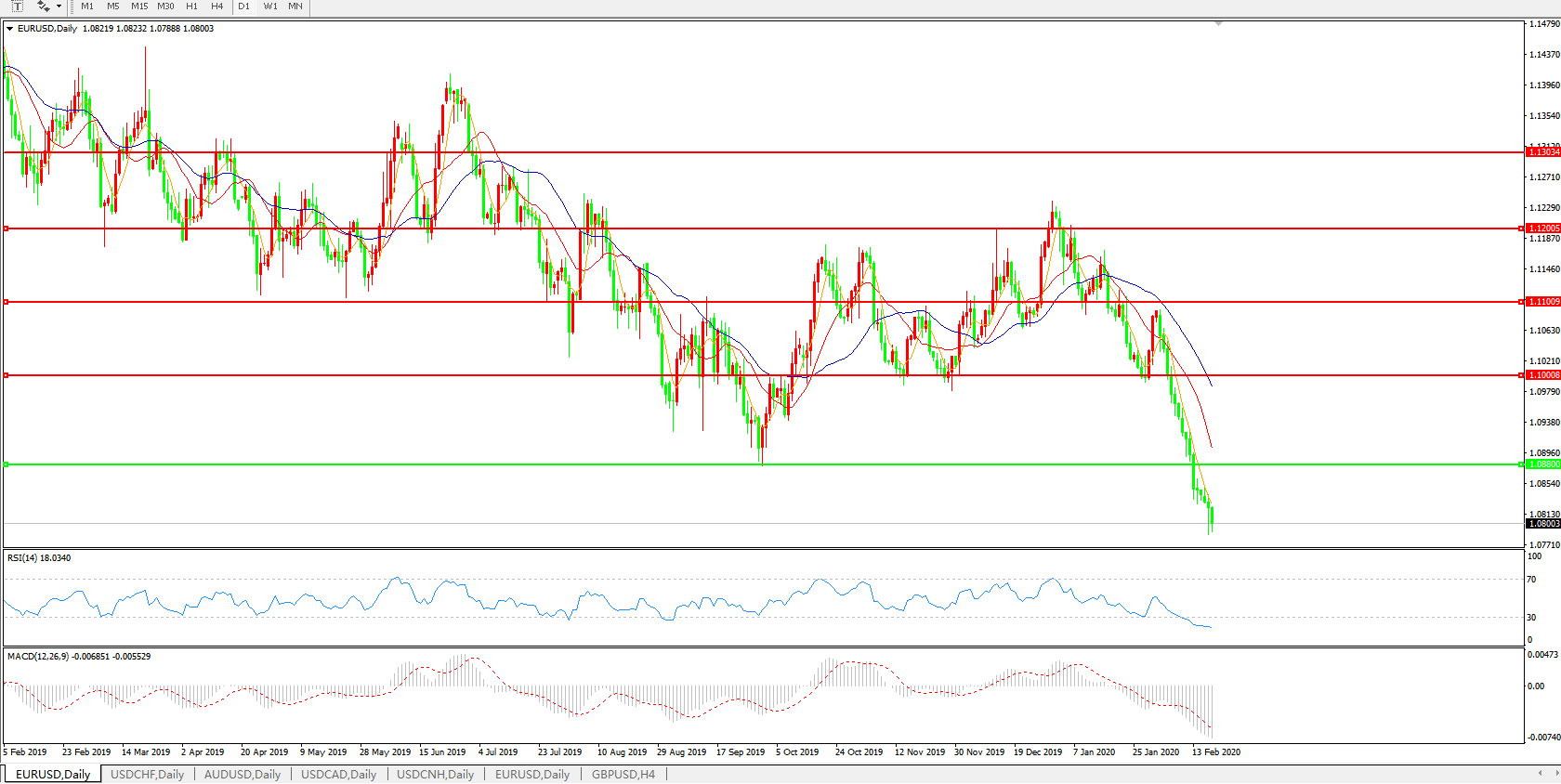 欧元兑美元在周二欧市午盘过后继续跳跌,触及1.0813这一自2017年4月份以来的34个月新低,因日内欧元区ZEW信心指数表现不尽如人意,而这在总体市场情绪焦虑的背景下,足以引发资金流的新一轮跨大西洋转移,令欧元汇价雪上加霜;投资者普遍认定,在当前全球经济面临意外事件冲击的状况下,欧元区经济韧性远不及美国,对全球范围内出现的产业链中断及消费市场萎缩风险更加敏感,这结合近期的经济数据,令欧元汇价被持续看衰,探底过程因而仍在延续; 日内欧元兑美元已经跌破了1.0821这一最后一道支撑,此后跌穿1.08关口,回补2017年4月法国总统马克龙当选时留下的向下跳空缺口已经在所难免,汇价支撑位因此下移至跳空缺口出现前的高位1.0778,短线欧元汇价任何的反弹,也都将只是空头进一步入场的良机。