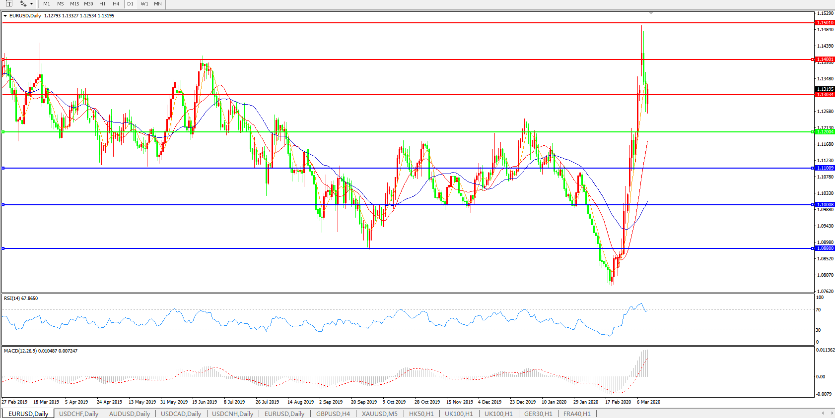 欧元兑美元在本周一跳涨至1.1495这一自2019年初以来一年多新高后,周二随着美元指数的反弹大幅回落,而周三亚洲时段汇价一度因为美元再度遭到抛售而回升,此后又重新回落,持于1.13关口;大华银行的分析师因而指出,欧元兑美元此前的涨势是因为投资者押注美联储降息同时,美债收益率暴跌引发美元被抛售,并非因为欧元区自身的利多。而眼下,在欧洲央行于周四即将召开政策会议,外加欧元区当前已经成为了全球公共卫生风险的风暴中心之后,欧元进一步上行的空间已经有限;该行分析师指出,如果日内美国金融市场能够进一步稳住阵脚,那么美元汇价的进一步回稳将给欧元带来额外的压力,尤其是在市场押注欧洲央行会在本周被迫推出进一步宽松措施的背景下。这意味着欧元兑美元短线有进一步下探试探1.1240这一去年年底前期高位支撑的可能性,一旦失守该点位,汇价将下探至10日均线切入位1.12关口