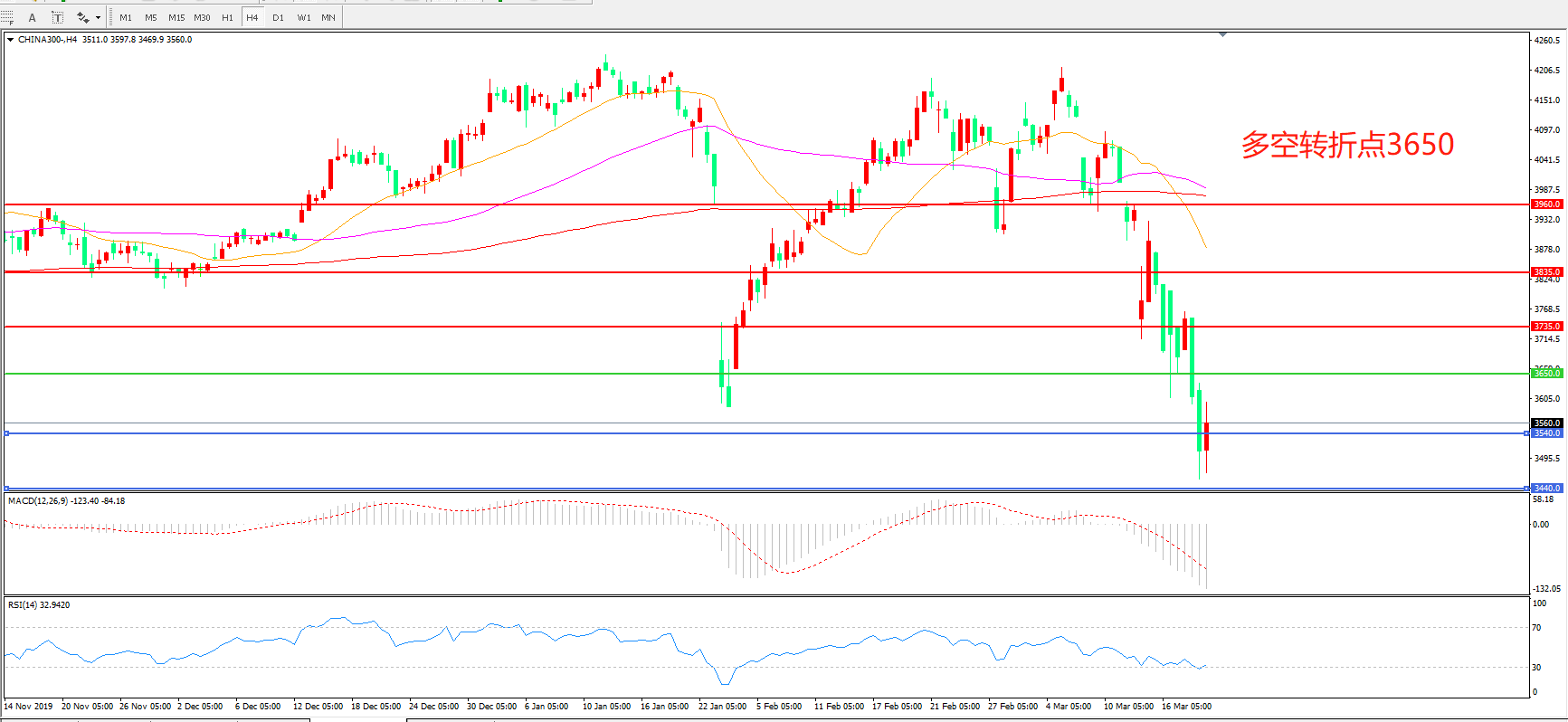 沪深300  CHINA 300   4小时图