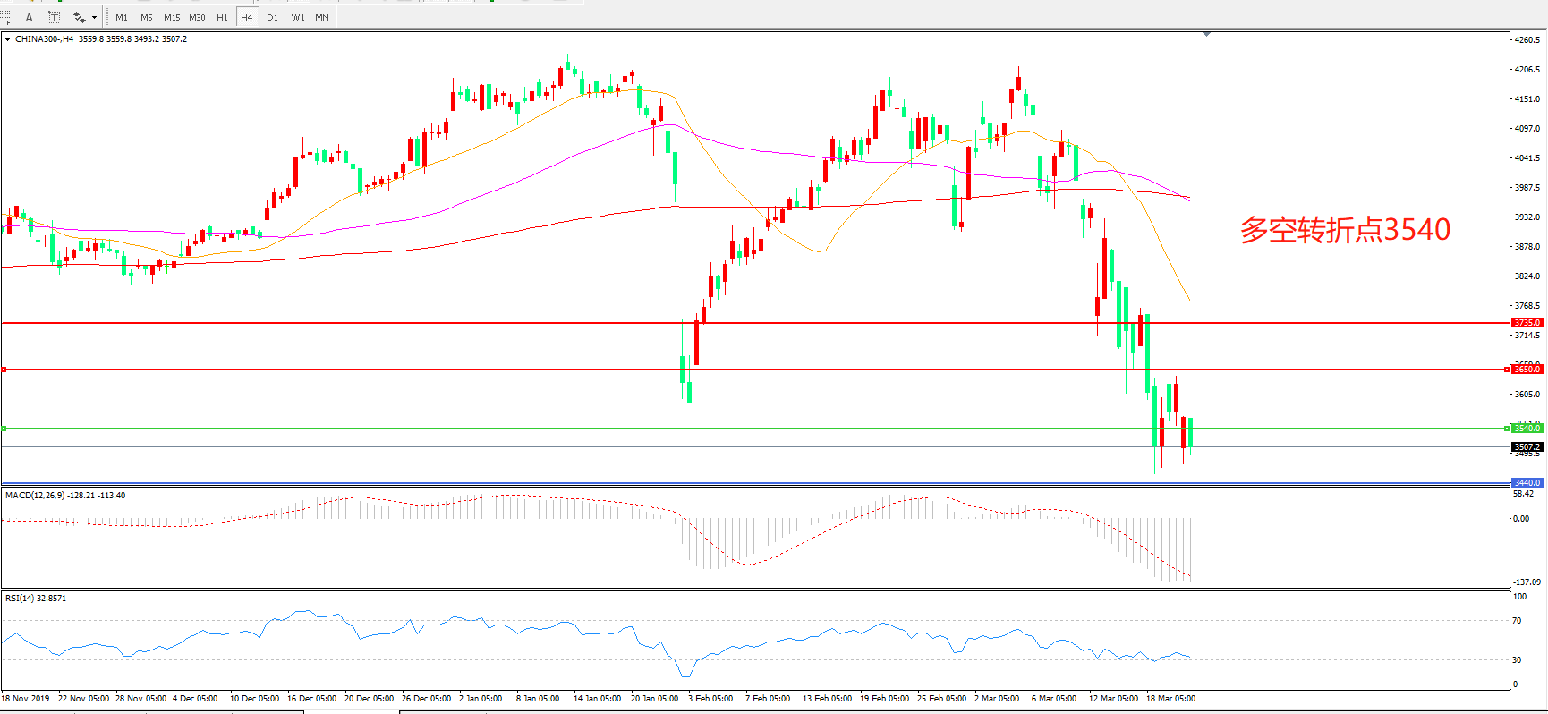 沪深300  CHINA 300   4小时图