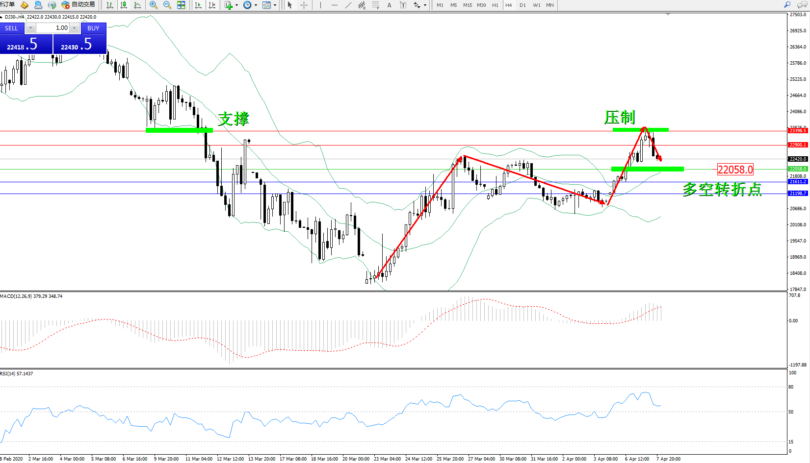道琼斯指数4月7日(周二)收盘下跌26.10点,跌幅0.12%,报22653.86点。美国股市收盘下跌,股指延续了近期的大幅波动局面,道指回吐逾900点涨幅,投资者正在权衡多个主要国家的新冠疫情是否正在缓解。感到市场表现得非常波动,这种过山车式行情还会继续出现,底部将再次面临考验。在股市看到的更多是一种企稳走势,因疫情数字在美国部分辖区正在见顶。疫情或将结束,但世界绝不是运转良好的,也绝不是能让人冒险的。汇市和股市的波动性已明显下降。央行在缓解美元市场压力方面做得很好,正在产生效果;美国总统特朗普称,美元依然非常坚挺,正将继续采取大胆的措施支持商业领域;讨论为救济贷款追加资金,已经要求为救济贷款追加2500亿美元。