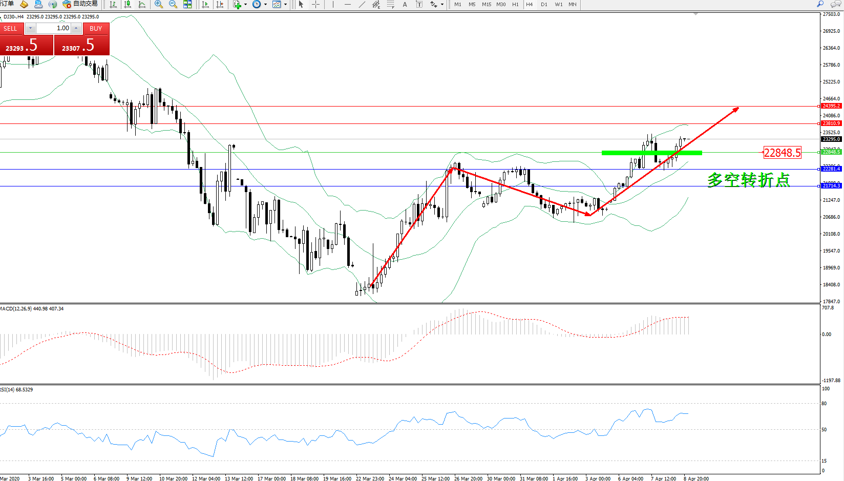 道琼斯指数4月8日(周三)收盘上涨779.70点,涨幅3.44%,报23433.57点。美国股市重新回到技术性牛市区域,投资者对新一轮刺激措施及经济解封前景持乐观态度。房地产,能源和公用事业板块领涨。市场似乎在权衡利弊,尽管实时经济数据不佳,但市场紧紧抓住了有关疫情的乐观迹象。尽管股市上涨,许多投资者仍然不愿太过冒险,因为预期一些大型经济体(美国,日本,德国,法国和英国)的新冠病例仍将快速增长。市场还担心,财政刺激措施来得太晚或力度不够。美联储实施了史无前例的货币刺激政策,美联储实施“零利率+开放式量宽政策”,加上美联储美元回购操作向市场注资超1.5万亿美元,美联储资产负债表规模已超过5.8万亿美元。