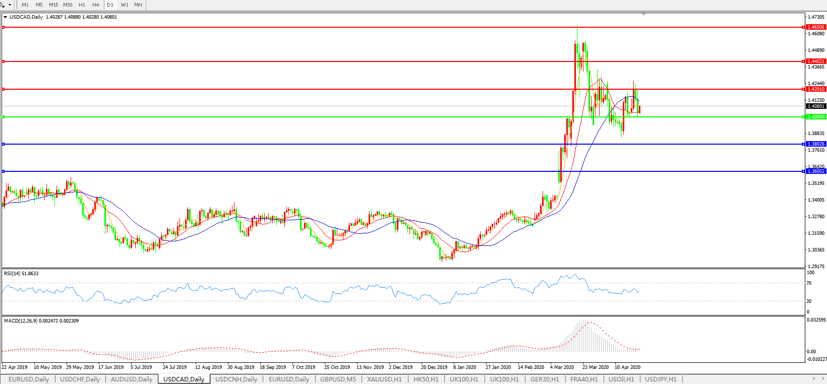 交易策略: 在1.4000之上,看涨,目标价位为1.4200、1.4400