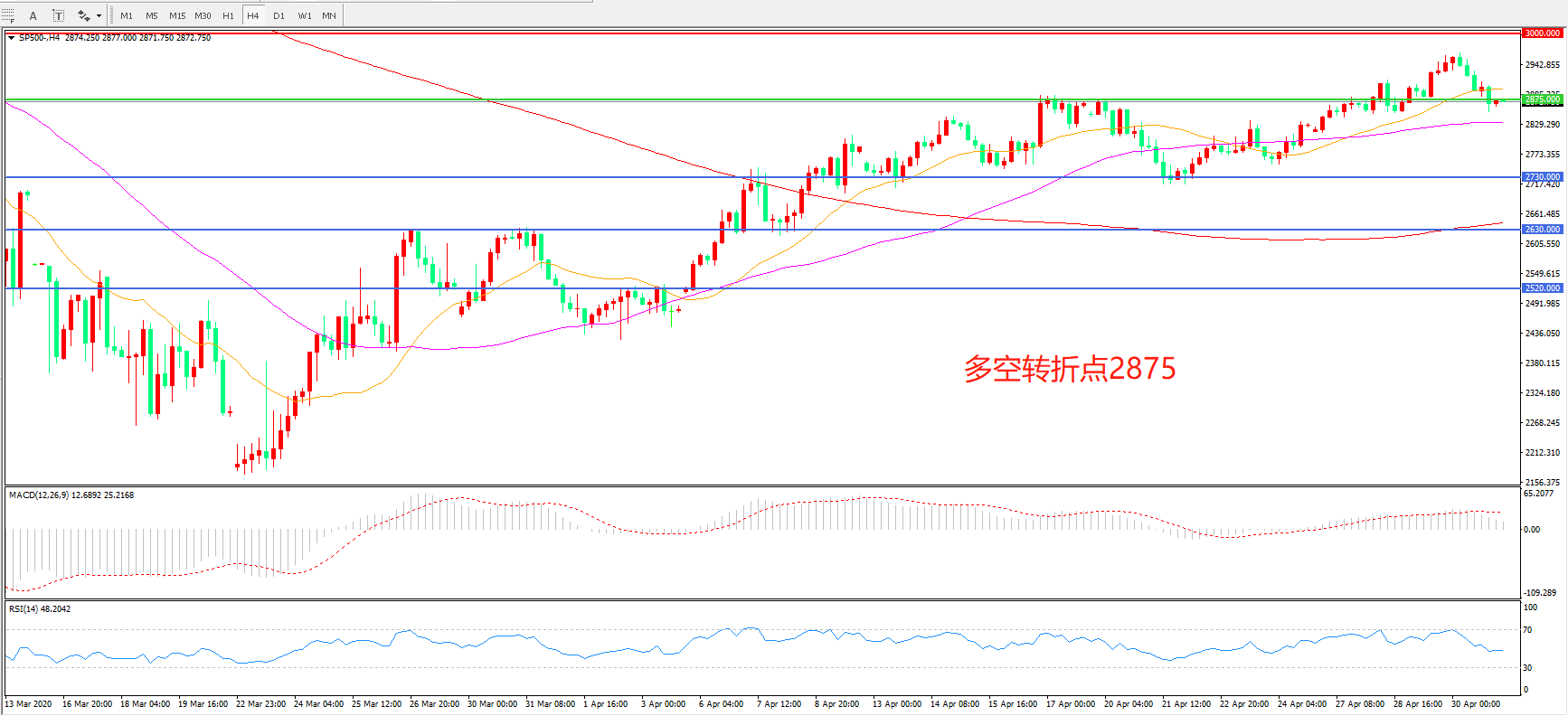 备选策略:在2875.00之下看跌,目标2730.00          2630.00